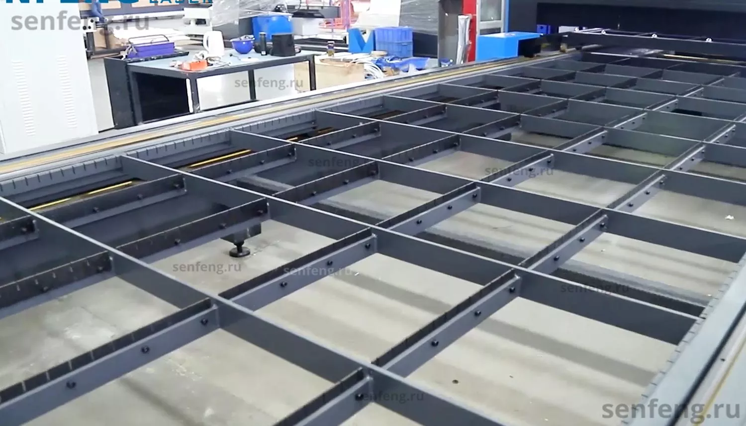 Senfeng SF6015H4 – высокомощный станок лазерной резки металла с защитой кабинетного типа и системой сменных столов. Рабочее поле 6000х1500 мм. Мощность от 6 до 60 кВт. |