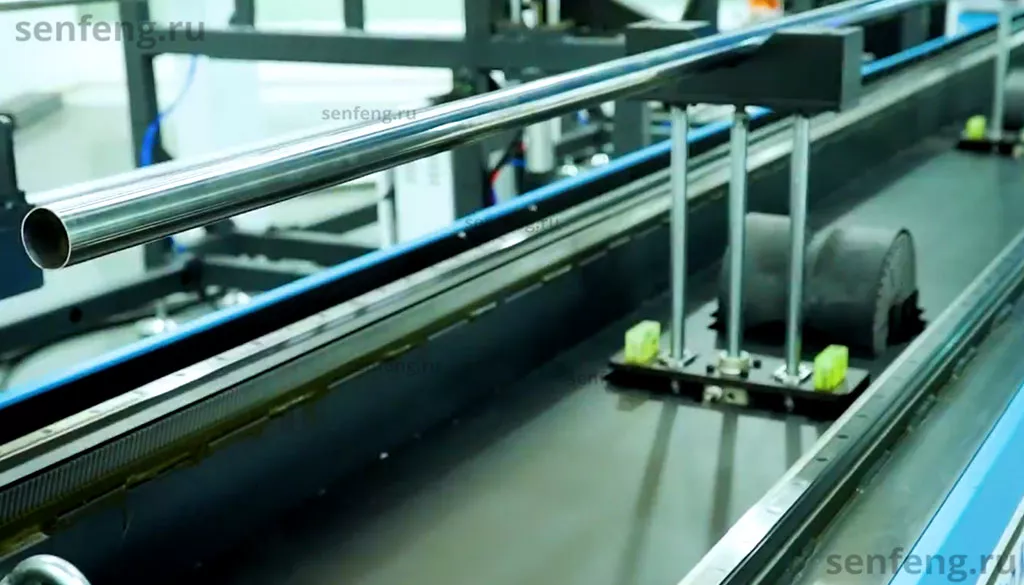 По желанию заказчика станок может быть оснащен автоматической или полуавтоматической системой подачи труб и профилей. Такая система радикально снижает затраты времени, связанные с загрузкой заготовок на станок .