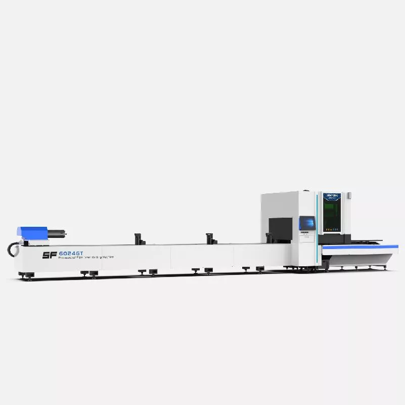 SENFENG SF6024GT - оптоволоконный станок лазерной резки трубного и профильного проката под разными углами (до 45°), с защитой в зоне реза.