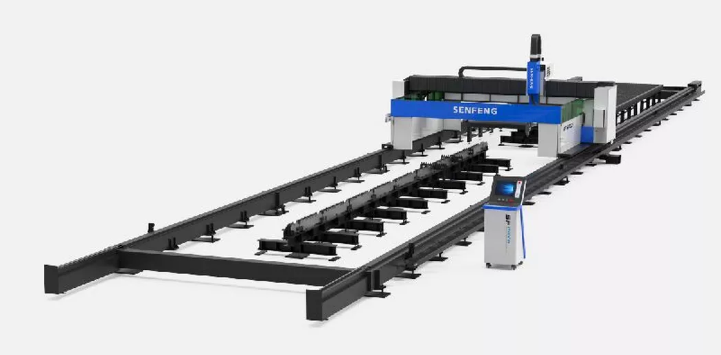 Senfeng SF1500CH – высокомощный комплекс лазерной резки балочного металлопроката (тавр, двутавр), имеет портальную конструкцию. Помимо поперечной резки балок, также может выполнять маркировку, резку отверстий, снятие фасок и резку листового металлопроката (опция). Может комплектоваться роботизированной установкой для лазерной сварки балки (опция).