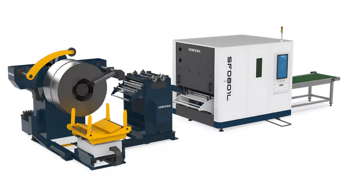 Senfeng SF0801LS - компактный автоматизированный комплекс лазерной резки предназначенный для высокоскоростного раскроя металла, поставляемого в рулонах. Лазерная установка с кабинетной защитой, входящая в состав комплекса, может быть оснащена излучателями мощностью от 1,5 кВт до 3 кВт.