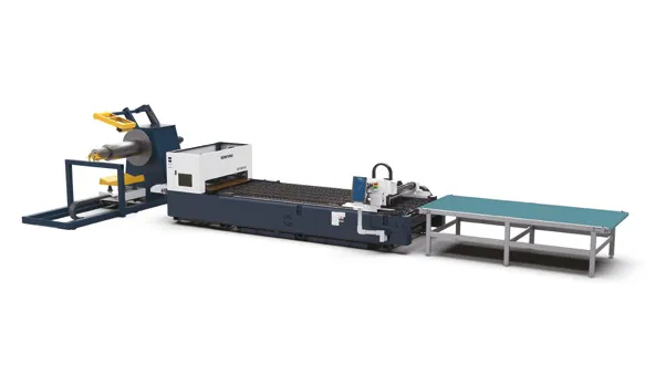 Senfeng SF15015C - автоматический комплекс лазерной резки предназначенный для высокоскоростного раскроя металла, поставляемого в рулонах. Лазерный станок, входящий в состав комплекса, оснащается излучателями мощностью 3 кВт.