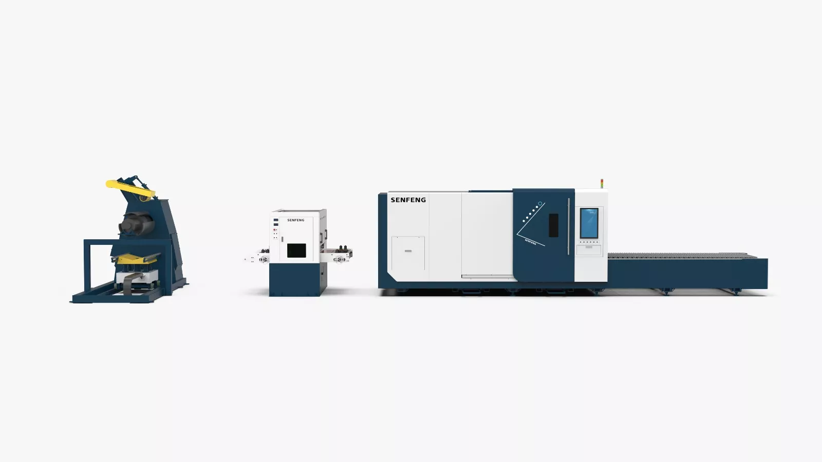 Senfeng SF1502CH - автоматизированный комплекс лазерной резки предназначенный для высокоскоростного раскроя металла, поставляемого в рулонах. Лазерная установка с кабинетной защитой, входящая в состав комплекса, может быть оснащена излучателями мощностью от 1,5 кВт до 6 кВт.