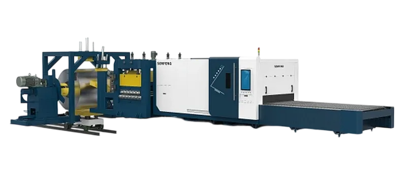 Senfeng SF2012CH - сверхмощный автоматизированный комплекс лазерной резки предназначенный для высокоскоростного раскроя металла, поставляемого в рулонах. Лазерная установка с кабинетной защитой, входящая в состав комплекса, может быть оснащена излучателями мощностью от 12 кВт до 80 кВт.