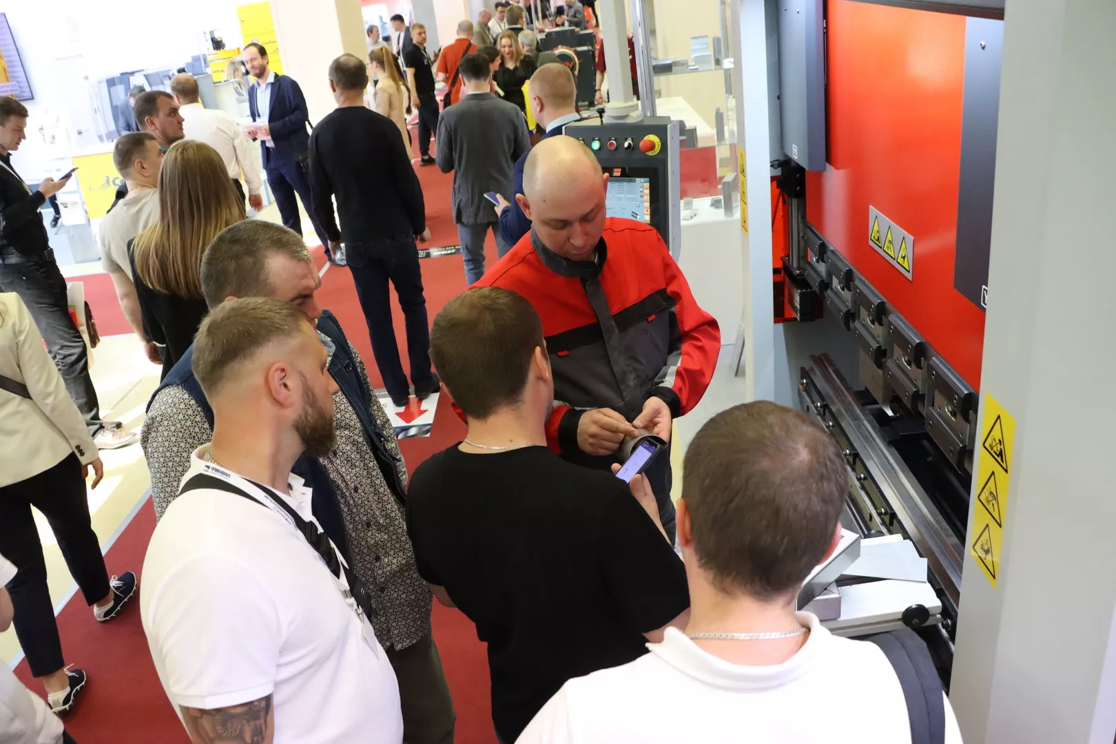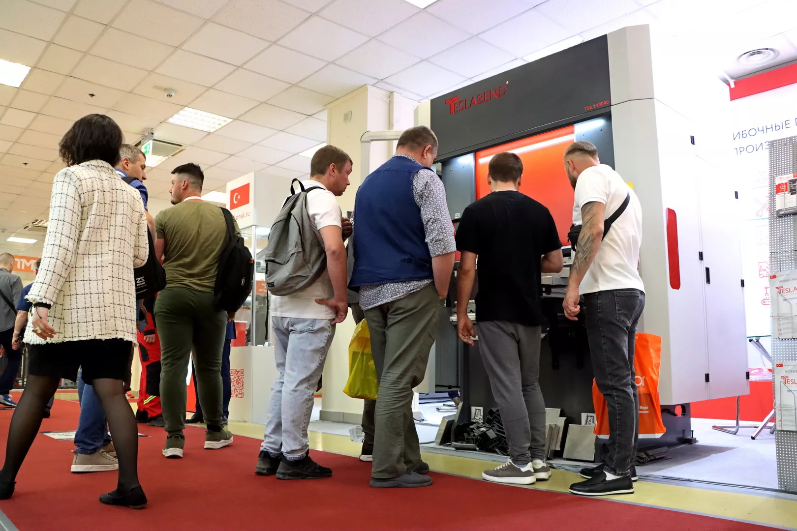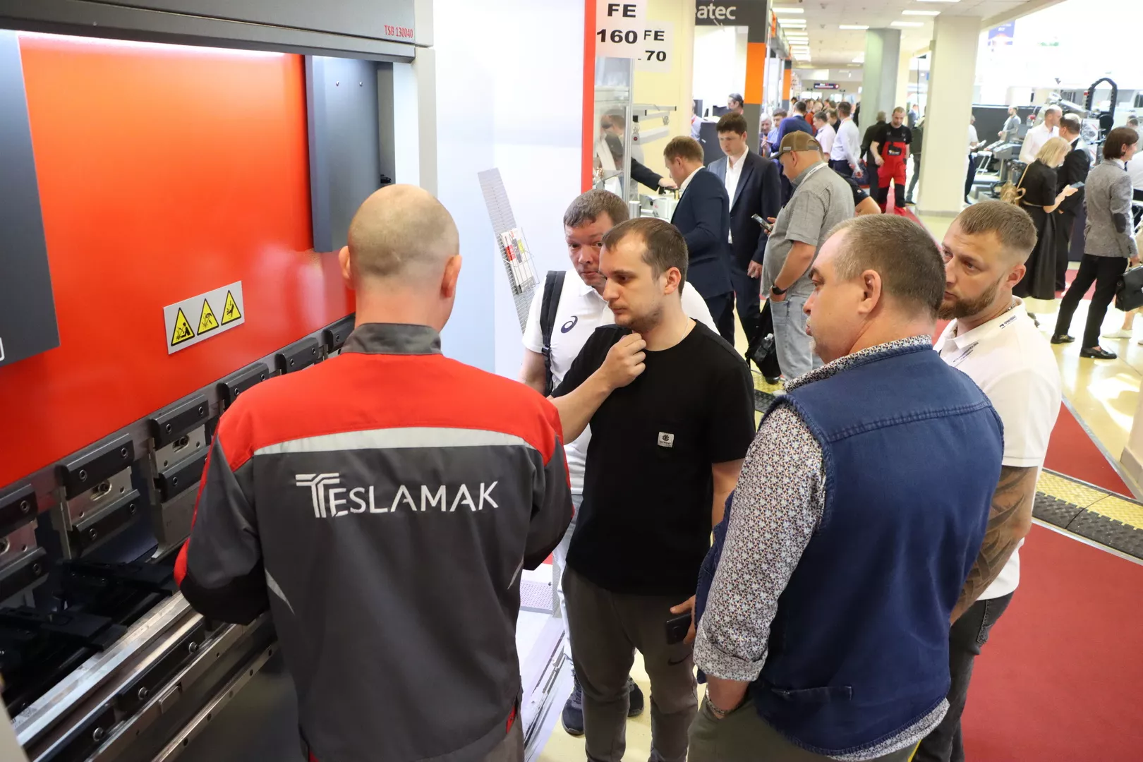 Особый интерес вызвали высокопроизводительный лазерный труборез Senfeng SF6020T (3 кВт) и автоматизированный комплекс для резки рулонной стали Senfeng SF1502CH (3 кВт). Оживленно было и на стенде Teslamak, где мы представили гидравлические листогибочные прессы моделей - Teslamak TSB 2050х60T (усилие 60 тонн) и Teslamak TSB 1300х40T (усилие 40 тонн).
