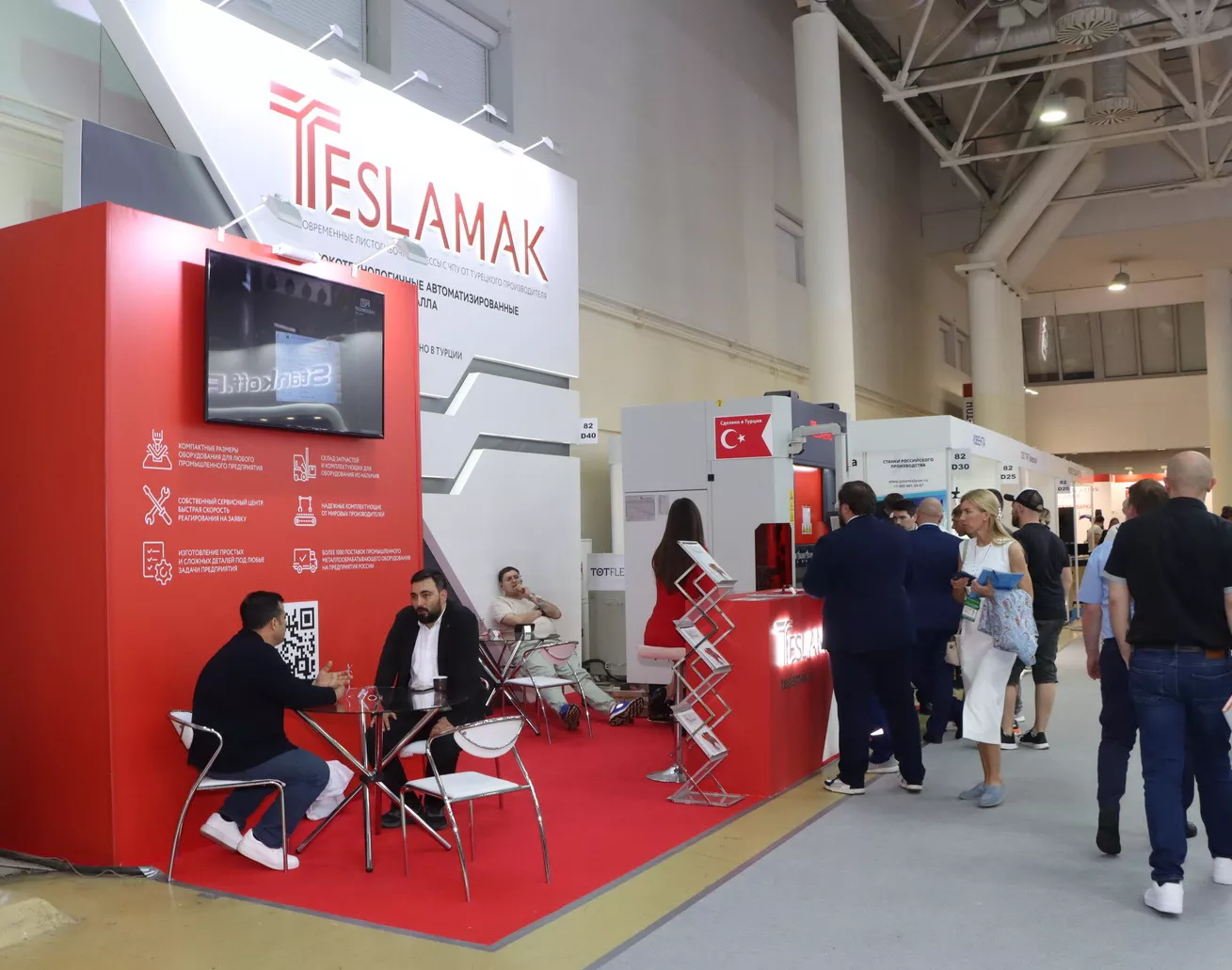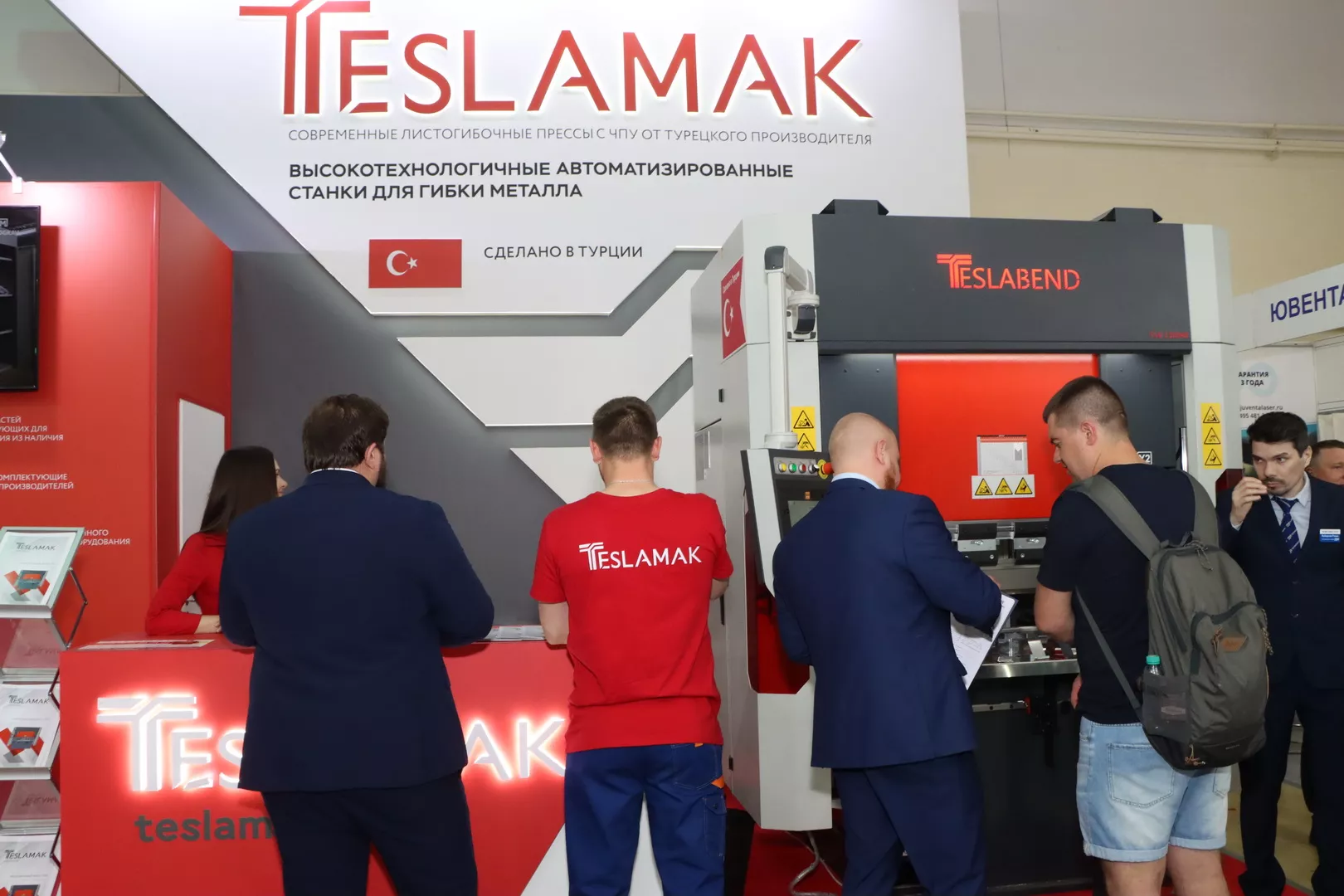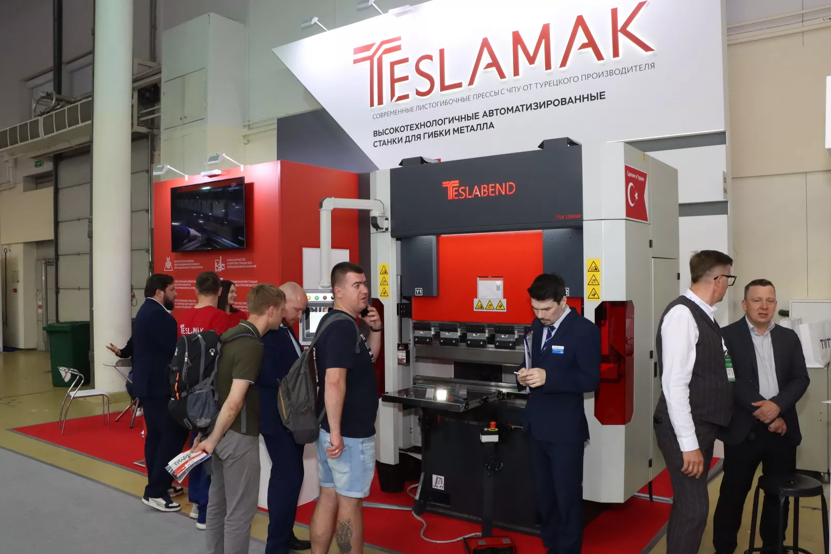 В павильоне 8.2 мы демонстрировали широкие возможности компактных гидравлических листогибочных прессов Teslamak модели TSB 1300х40T (усилие 40 тонн). Это оборудование отличается высокой технологичностью и производительностью, широким функционалом, и отличным соотношением «цена-качество».