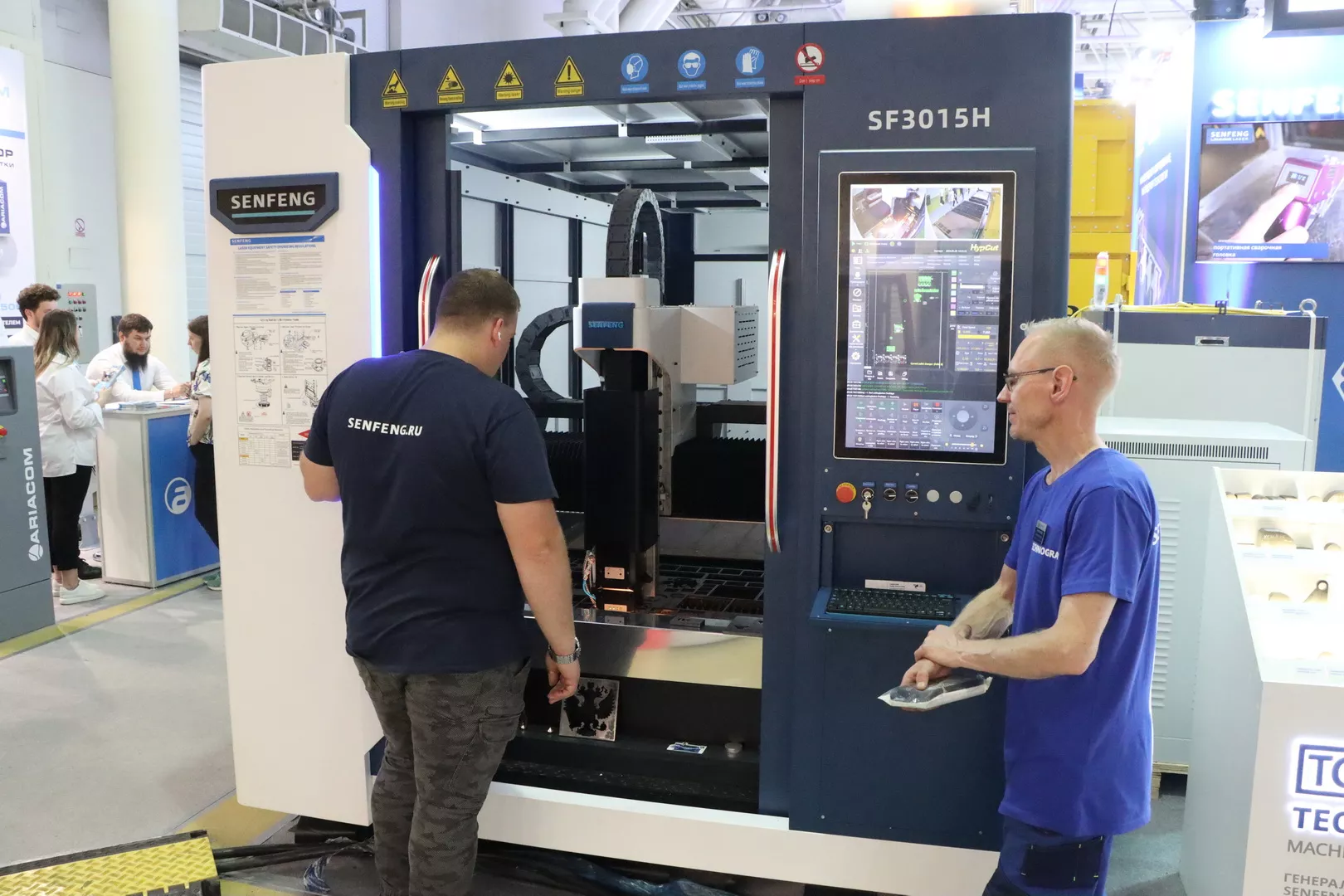 На основном стенде «Технограв» в павильоне 8 (зал 1) представители промышленных предприятий, занятых в сфере металлообработки и машиностроения активно интересовались возможностями высокомощной лазерной установки Senfeng серии H4 (20 кВт), лазерного станка Senfeng для резки листа серии N (3 кВт), а также комбинированной установки серии С (6 кВт).