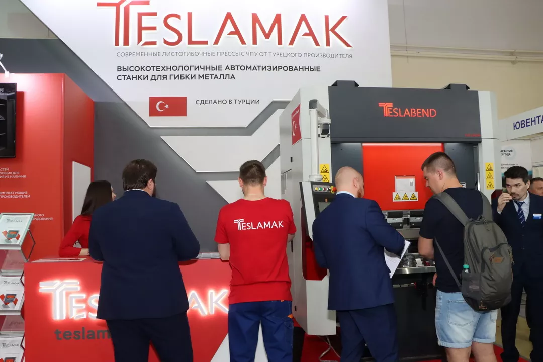 Было многолюдно и на втором стенде, где демонстрировалась работа листогибочного оборудования бренда Teslamak (Турция). Гидравлические листогибы с ЧПУ модели TSB 1300х40T с усилием гиба 40 тонн и компактными габаритами привлекали внимание своей технологичностью и высоким уровнем автоматизации.