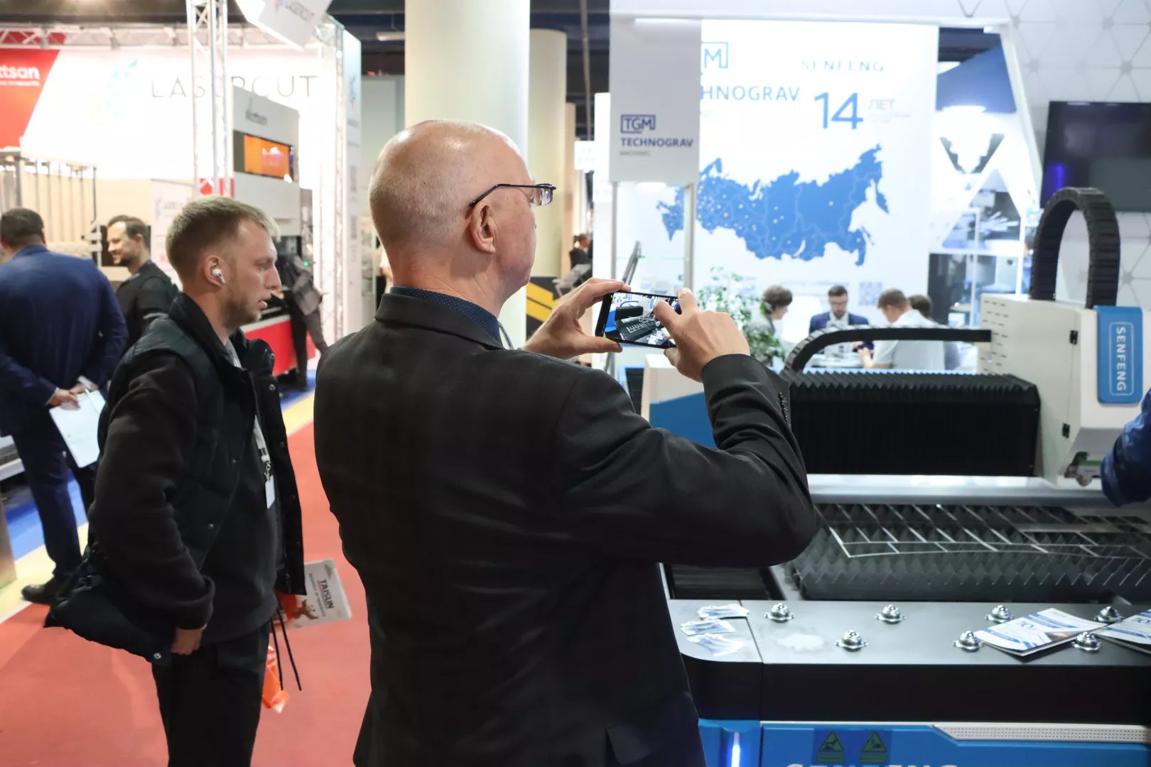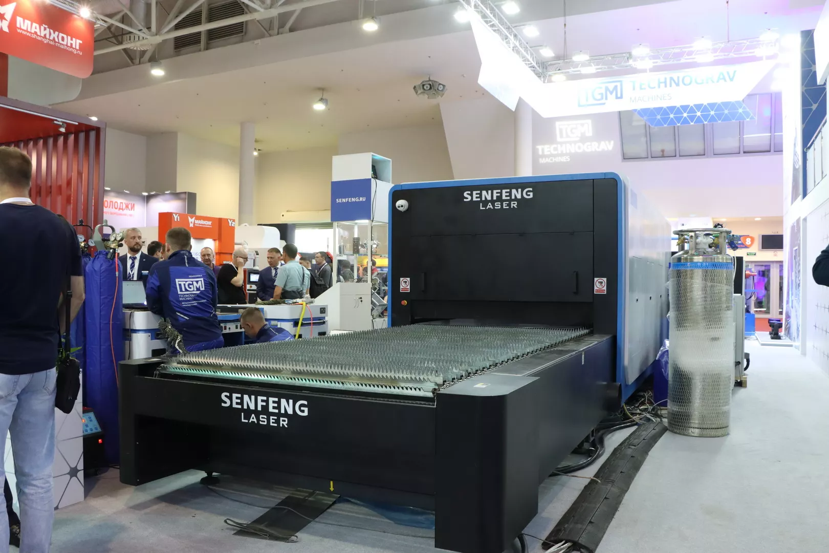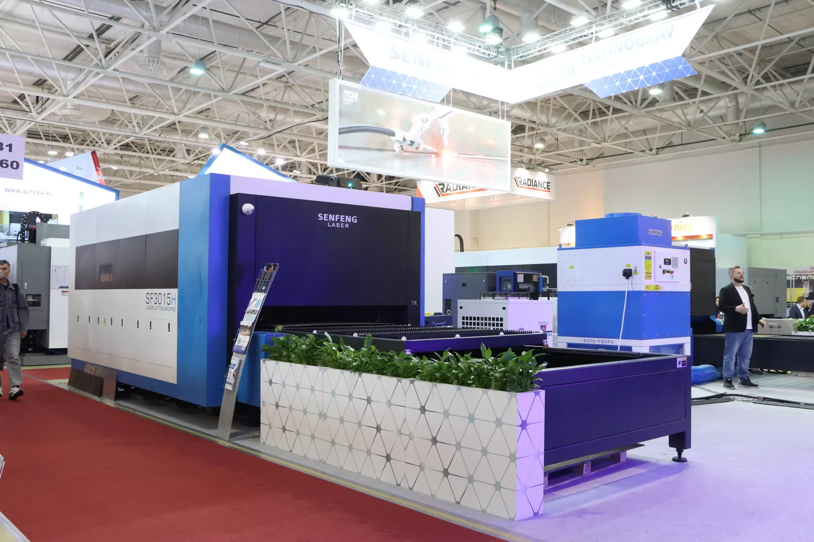 Наш самый большой стенд площадью 265 кв. метров посетило более 500 человек. Особый интерес у профессионалов металлообрабатывающей отрасли вызвали лазерные установки с кабинетной защитой и системой сменных столов – высокомощная Senfeng SF3015H4 (12 кВт) и хит продаж, компактная для своего класса Senfeng SF3015HC мощностью 6 кВт. Установки можно увидеть в работе и протестировать, сделав демо-образцы с использованием своих чертежей. Вниманием также пользовался автоматизированный комплекс для резки рулонной стали Senfeng SF1502CH (3 кВт). Напоминаем, что с этим лазерным оборудованием вы можете познакомиться в павильоне 8 зал 1, на стенде «Технограв» 81С50.