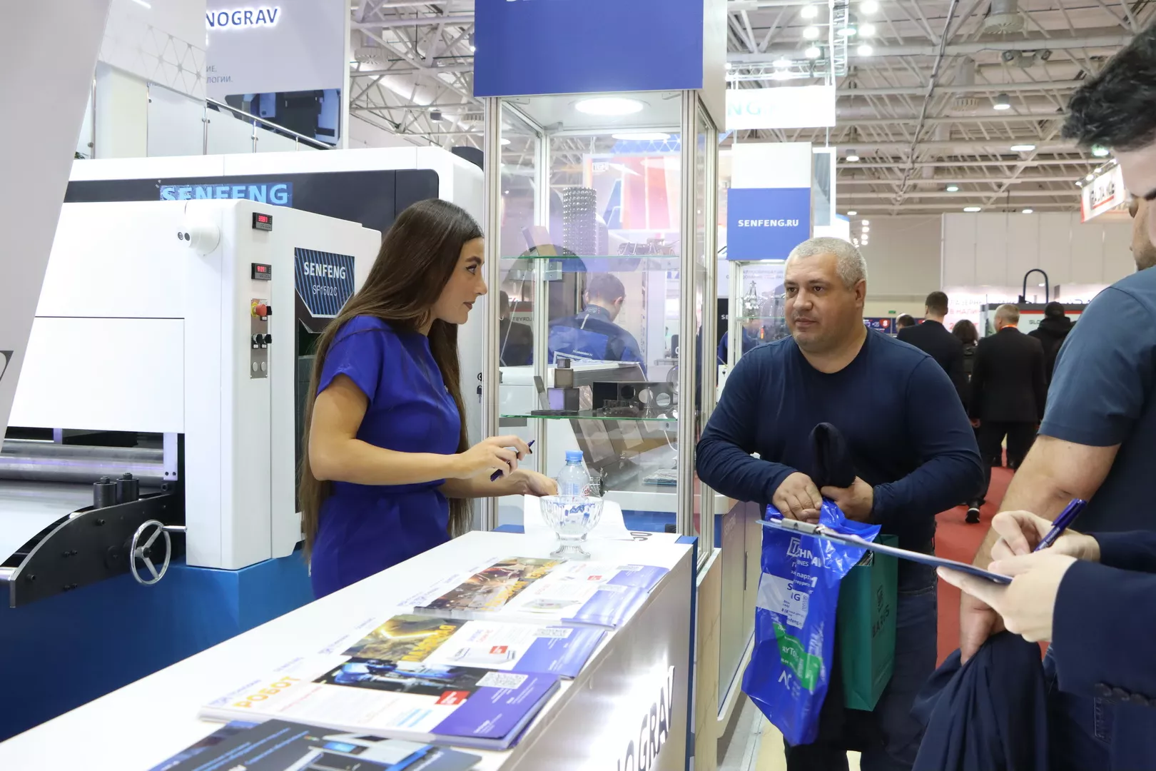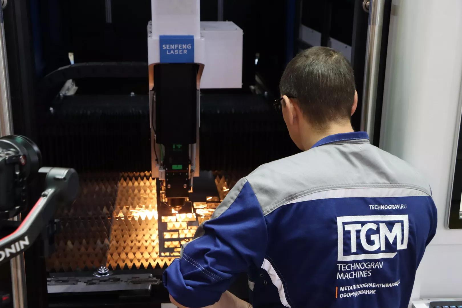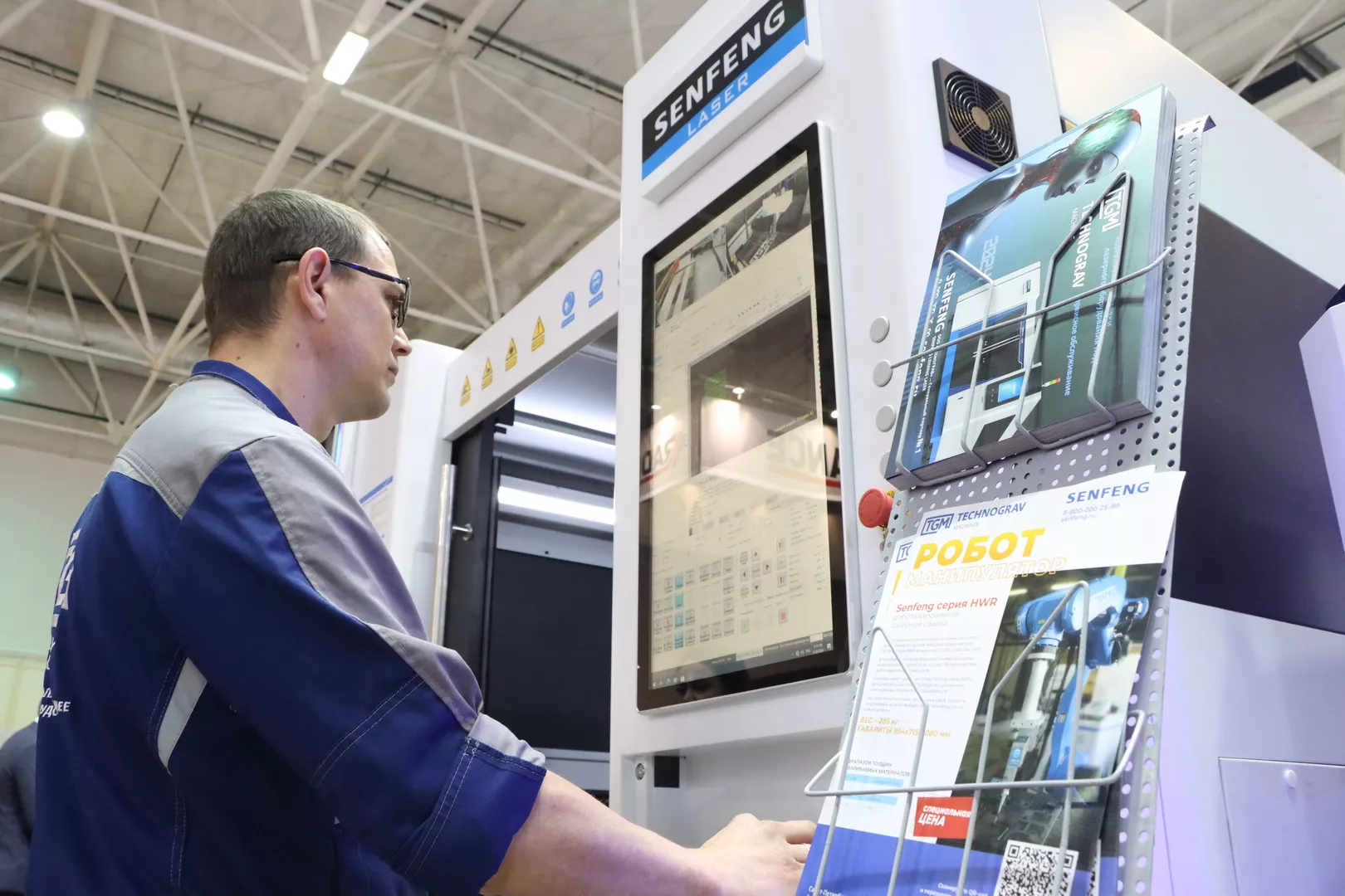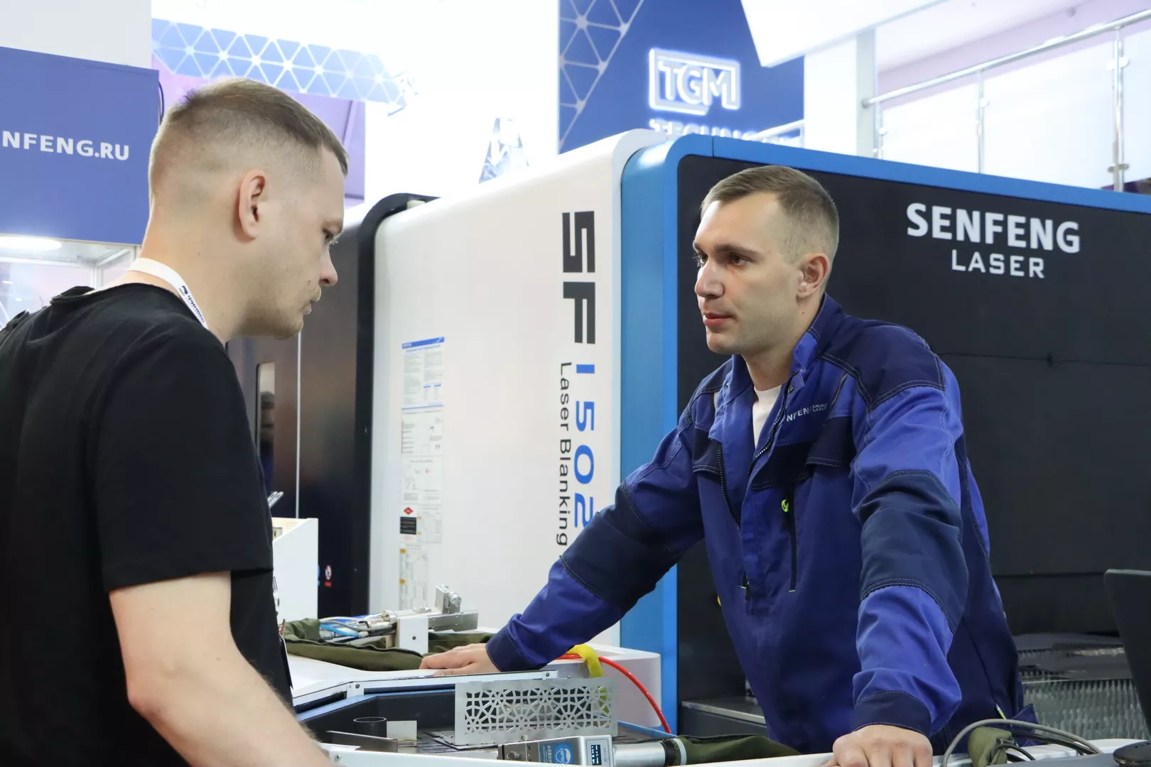 Наш самый большой стенд площадью 265 кв. метров посетило более 500 человек. Особый интерес у профессионалов металлообрабатывающей отрасли вызвали лазерные установки с кабинетной защитой и системой сменных столов – высокомощная Senfeng SF3015H4 (12 кВт) и хит продаж, компактная для своего класса Senfeng SF3015HC мощностью 6 кВт. Установки можно увидеть в работе и протестировать, сделав демо-образцы с использованием своих чертежей. Вниманием также пользовался автоматизированный комплекс для резки рулонной стали Senfeng SF1502CH (3 кВт). Напоминаем, что с этим лазерным оборудованием вы можете познакомиться в павильоне 8 зал 1, на стенде «Технограв» 81С50.