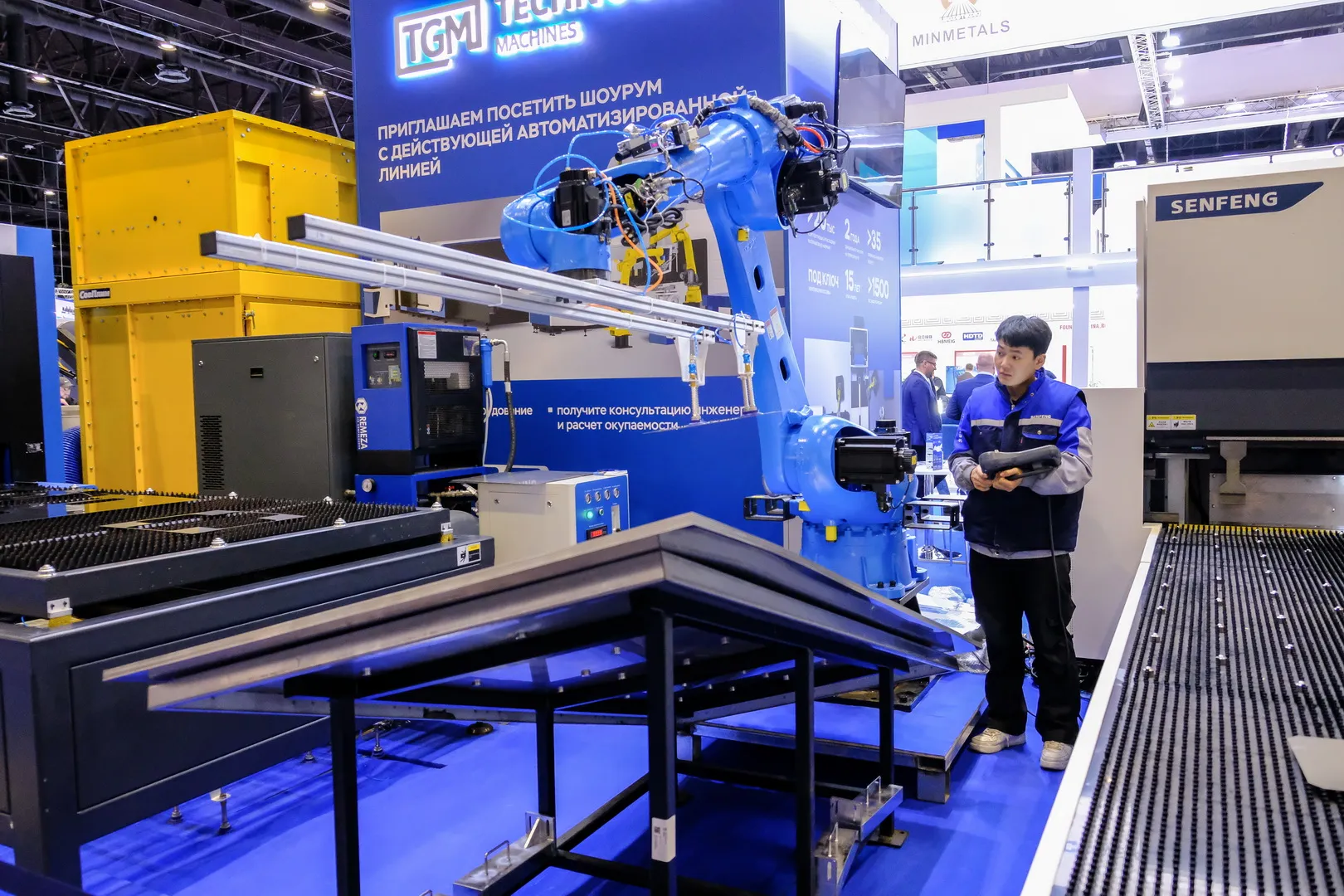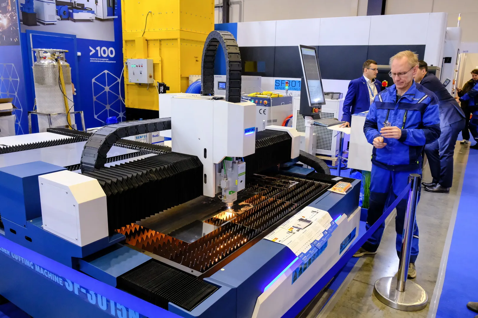 В центре событий - готовая производственная линия "лазерная резка-гибка-сварка" Senfeng которая работает как часы, с точным управлением и полной синхронизацией всех процессов. Гости стенда активно интересуются этим цельным решением для создания эффективного и высокорентабельного производства.