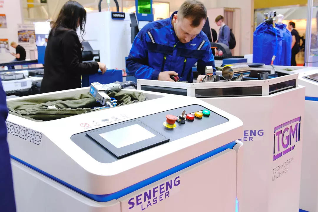 За сварочным столом все желающие под руководством специалистов «Технограв» могли попробовать в деле ручной аппарат волоконной лазерной сварки с автоматической подачей проволоки Senfeng SF1500HWM (1,5 кВт), а также нашу новинку - компактный передвижной аппарат с автоматической подачей проволоки и воздушным охлаждением Senfeng 1500HWP (1,5 кВт).