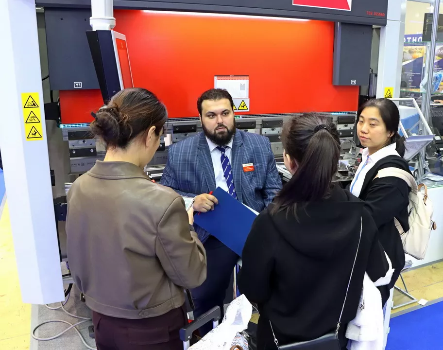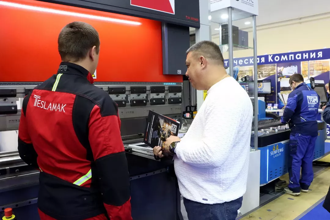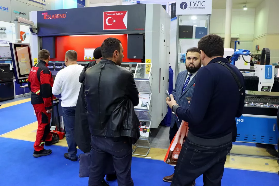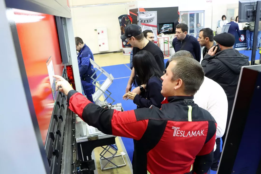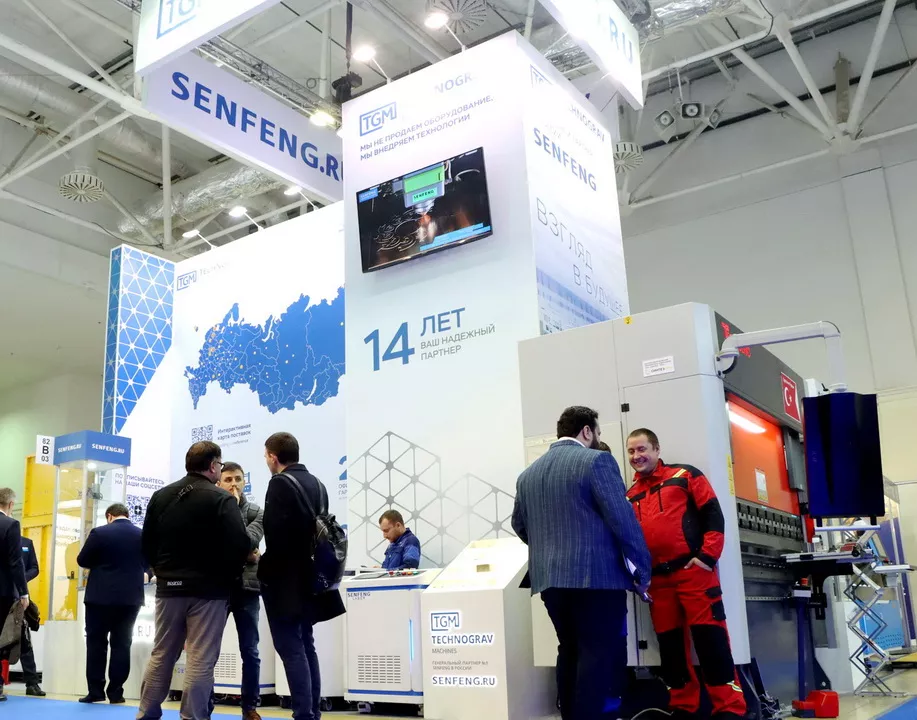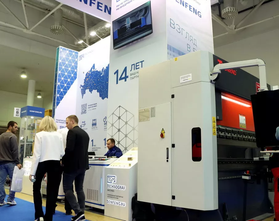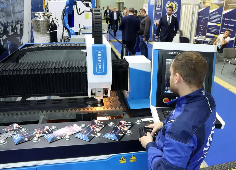 Наш стенд представил 9 единиц передовых лазерных систем для лазерной резки, сварки и очистки, шлифовки металла бренда Senfeng, а также гидравлические листогибочные прессы с ЧПУ бренда Teslamak. Вся техника демонстрировалась в работе и была заранее обеспечена заготовками.