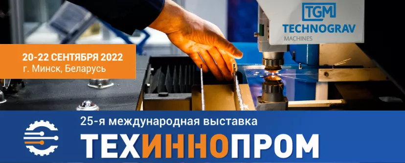 Компания ООО «Технограв» примет участие в масштабной юбилейной выставке в городе Минск. 25-я международная выставка «ТехИннопром» пройдет с 20 по 22 сентября 2022г параллельно с несколькими другими специализированными выставками: «ПрофСварка», «Химия. Нефть и газ», «Полимеры и композиты».