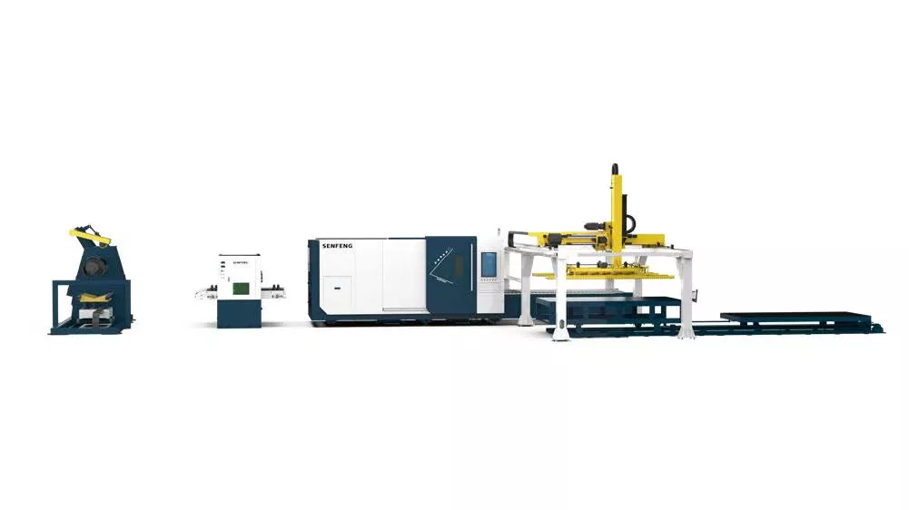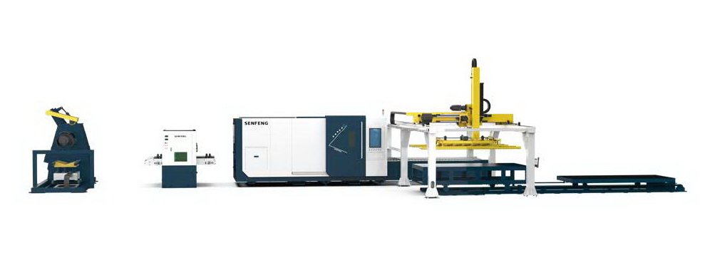 Полностью автоматизированная производственная линия Senfeng серии ALU (SF1503CLH-ALU), вариант комплектации с устройствами выгрузки и штабелирования готовой продукции. Мощность от 3 до 6 кВт.
