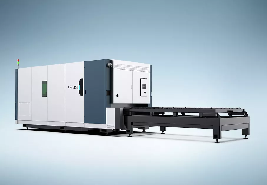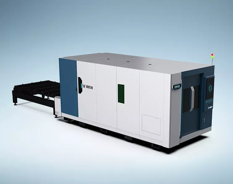 SENFENG SF3015H4 – лазерный станок высокой мощности для резки листового металлопроката, снабжённый кабинетной защитой и системой сменных столов и функцией машинного зрения (CypVision)