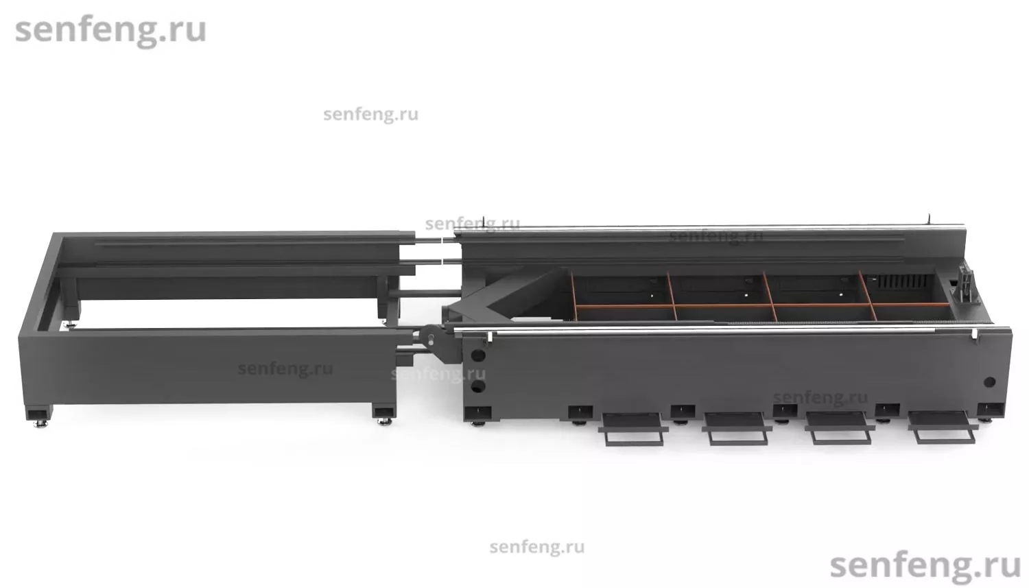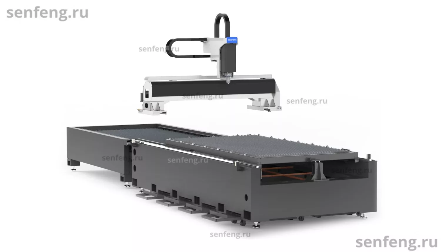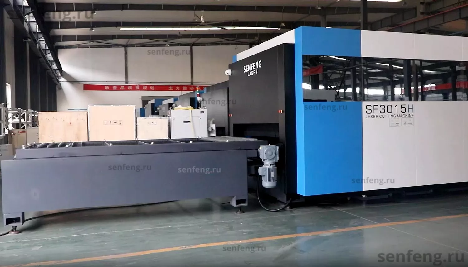 Senfeng SF6015H4 – высокомощный станок лазерной резки металла с защитой кабинетного типа и системой сменных столов. Рабочее поле 6000х1500 мм. Мощность от 6 до 60 кВт. |