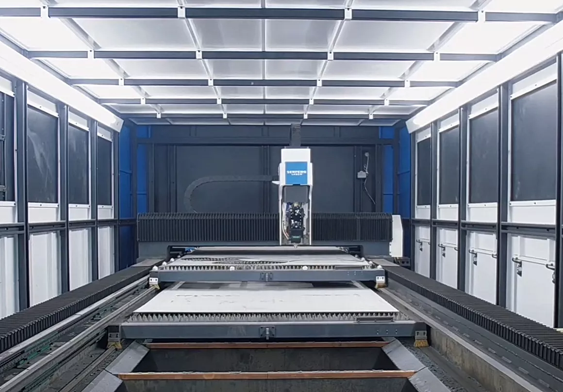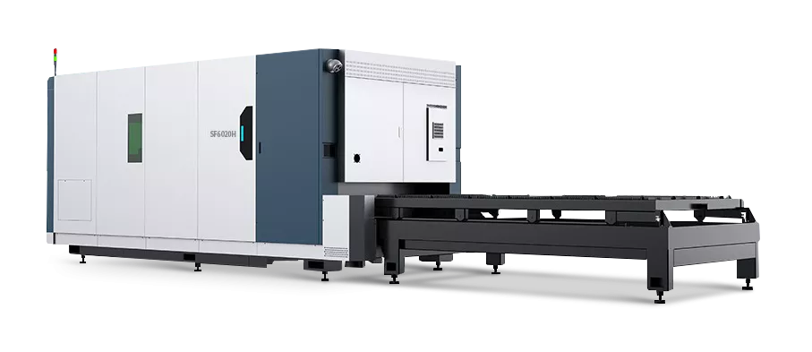 SENFENG SF6020H4 – лазерный станок высокой мощности для резки листового проката, снабжённый кабинетной защитой, системой сменных столов и функцией машинного зрения.