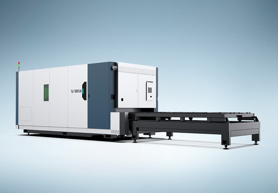 SENFENG SF8025H4 – лазерный станок повышенной мощности для резки листового проката, снабжённый кабинетной защитой, системой сменных столов и функцией машинного зрения.