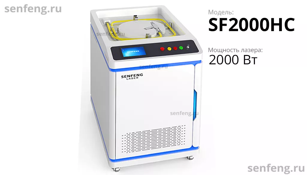 Простой в эксплуатации специализированный иттербиевый оптоволоконный лазерный прибор для очистки металла SENFENG SF2000HC . Может оснащаться лазерным излучателем до 2 кВт.