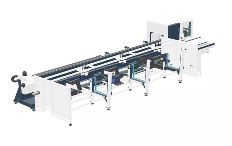 Станок SF6009 Plus может быть оснащен приемным столом с сервоподдержкой. Приемный стол комплектуется системой сортировки, позволяющей автоматически отделять отходы от готовых труб без ручного вмешательства. Приемный стол и стеллаж для выгрузки объединены в единую компактную конструкцию.