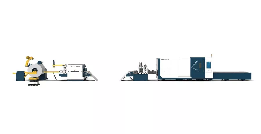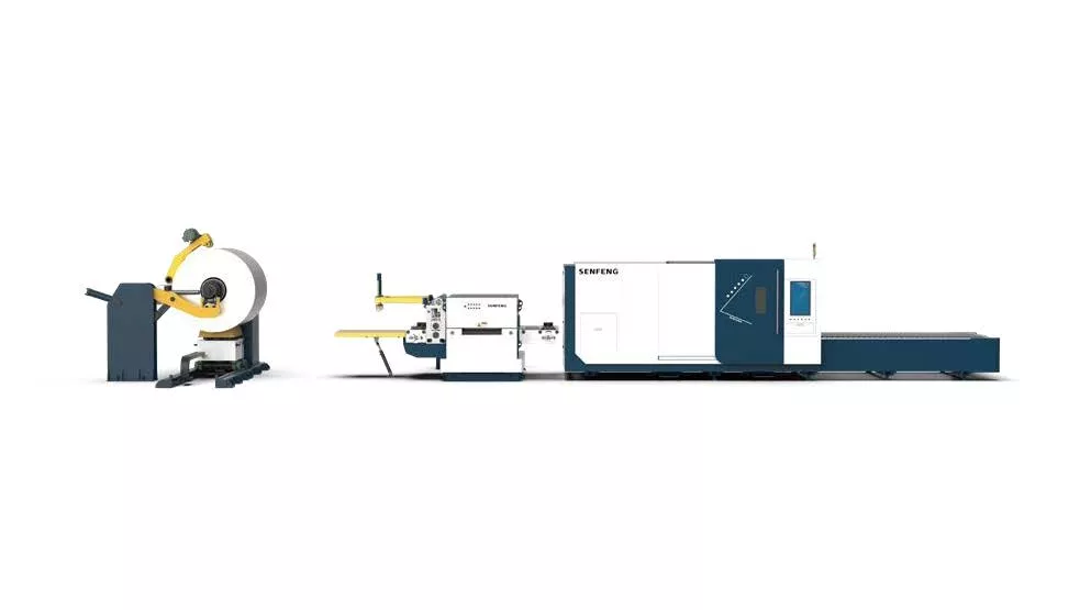 Senfeng SF1503CLH - автоматизированный комплекс лазерной резки предназначенный для высокоскоростного раскроя металла, поставляемого в рулонах. Лазерная установка с кабинетной защитой, входящая в состав комплекса, может быть оснащена излучателями мощностью от 3 кВт до 6 кВт.
