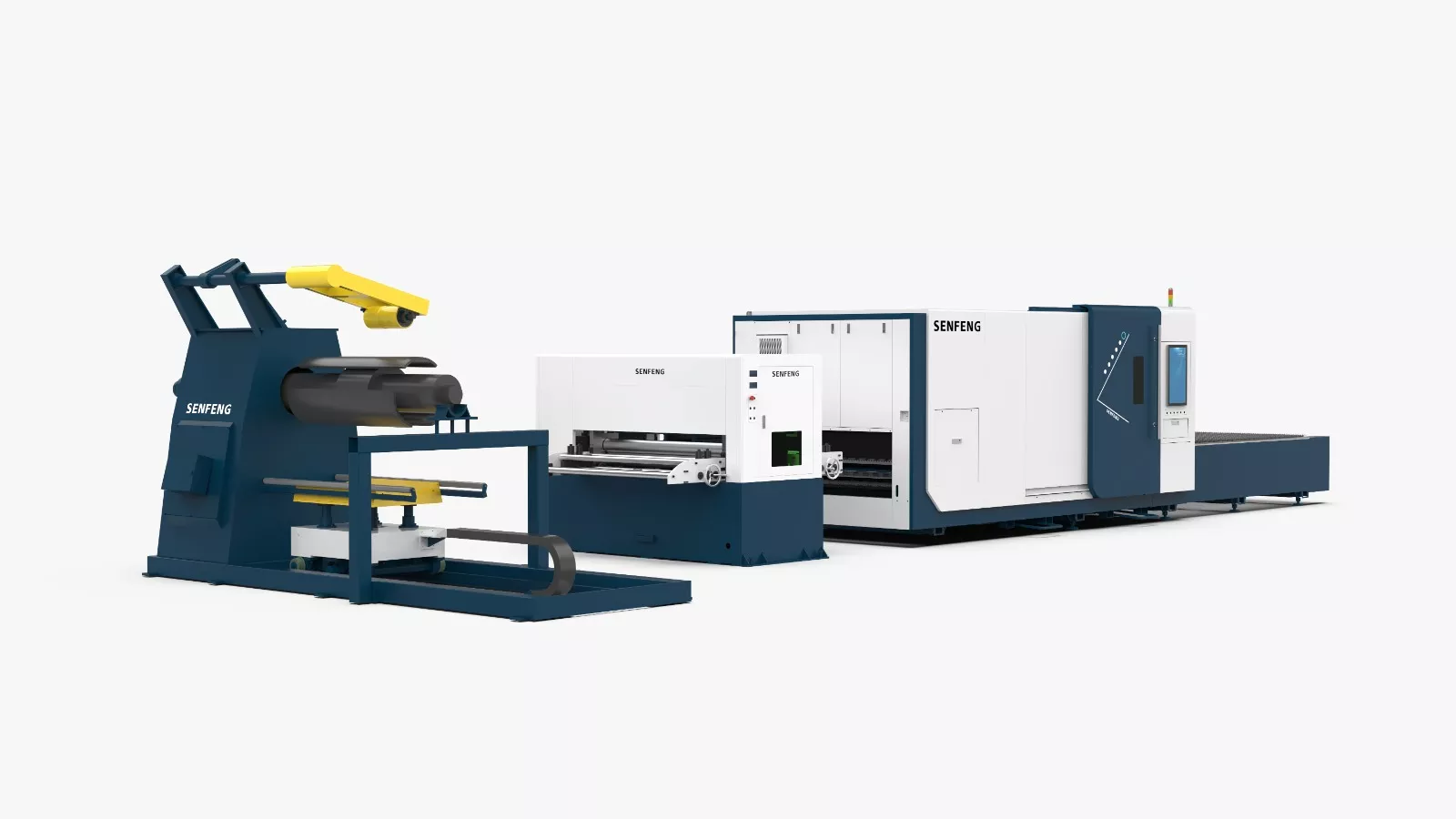 Senfeng SF1502CH - автоматизированный комплекс лазерной резки предназначенный для высокоскоростного раскроя металла, поставляемого в рулонах. Лазерная установка с кабинетной защитой, входящая в состав комплекса, может быть оснащена излучателями мощностью от 1,5 кВт до 6 кВт.