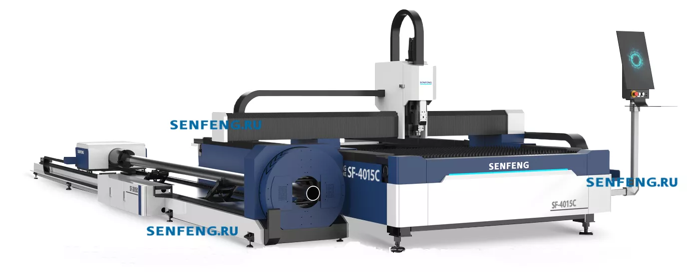 SENFENG SF4015C – комбинированный лазерный станок открытого типа для резки листового, трубного и профильного проката.