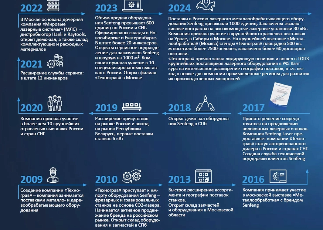 В 2017 году «Технограв» импортировал первый волоконный лазерный станок Senfeng и с тех пор поставил российским потребителям более 1000 единиц нового оборудования.