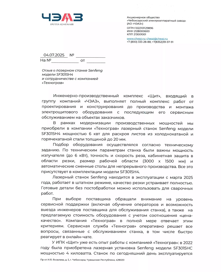 Генеральным партнёром №1 Senfeng Laser в Российской Федерации и странах СНГ является ООО “Технограв”.